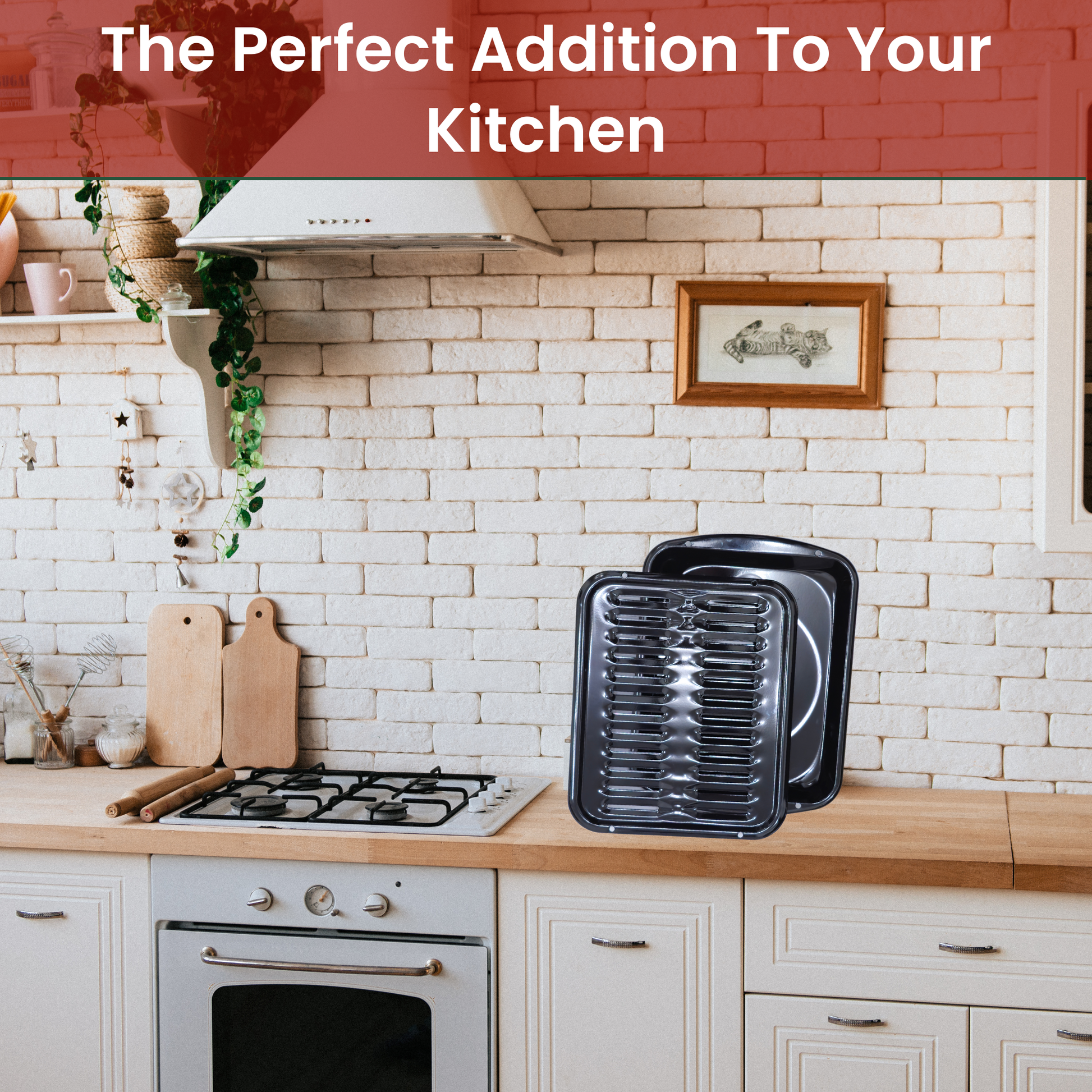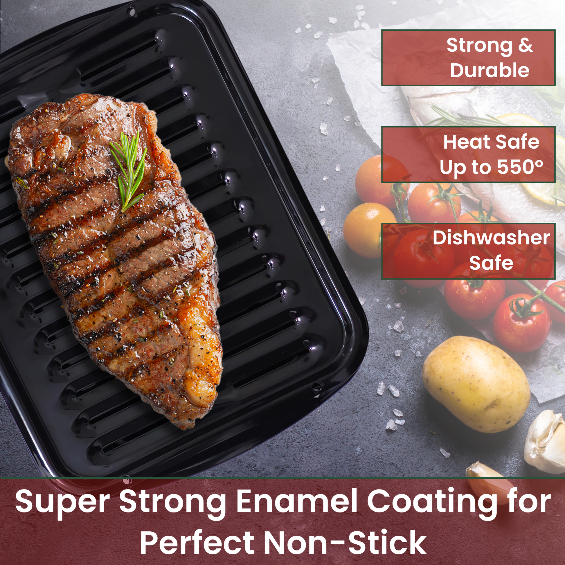 Broiler Pan for Oven Nonstick 16.6” x 12.75” Porcelain Coated - Withstands Heat up to 550 F